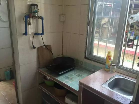 厨房隔了一半当卫生间以后变得很小。这个房东也太狠了。放个大点的煤气炉的地方都没有。