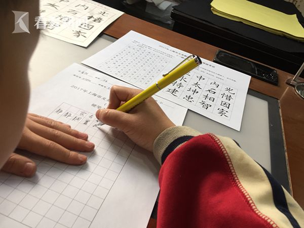 这个周末,上海五年级学生和初三学生参加了写字等级考试。这项考试自2011年推行至今,旨在提升学生对硬笔和软笔书法的兴趣和水平,需要分别写一篇16个字的毛笔字,和一篇600字的钢笔字。