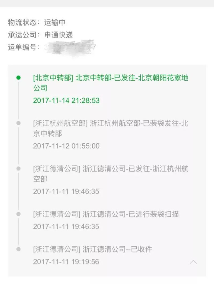 北京市民罗女士向记者反映:“双十一”在淘宝买的东西,11月14日到达北京市区,直到11月30日才收到。并且直到收到货,物流信息都停留在14日,没有任何更新。