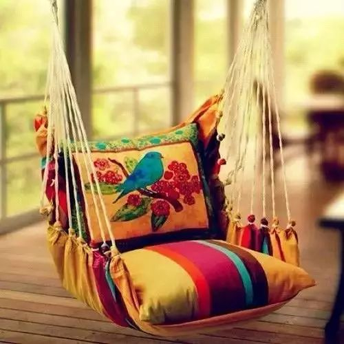通过绳子和木棍以及一大块布料来制作吊椅,之后将两个枕头放入吊椅中,舒服到没朋友。
