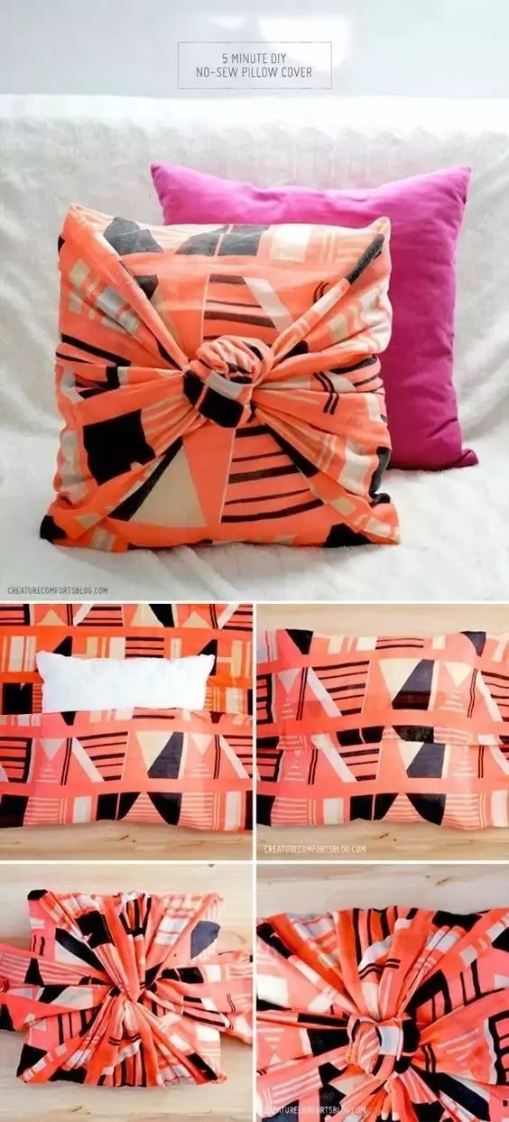 抱枕外面的枕套,往往都很漂亮,但是再漂亮用的久了也会旧的,如果你不会缝制又还没有新的枕套,那不妨试试这个方法!包袱系扎方式:非常简单且样式不俗的一种方式,绝对不费一针一线!
