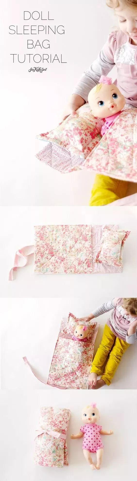 不用的枕套,当然这里指的是孩子的小枕套,可以给孩子做过家家的道具来用哦!一个个小枕套都变成了娃娃们的小睡袋,孩子开始照顾自己的每个小玩具了,是不是也特别有意义!