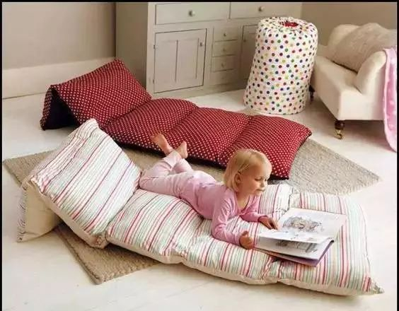 抱枕这种枕头放在沙发旁的还可以做个装饰小兜,放些遥控器,杂志之类再好不过,绝对节省空间也不影响美观。超赞的创意哦!放在孩子屋子的抱枕还可以这样藏基本绘本书在里面,还可以随时看!