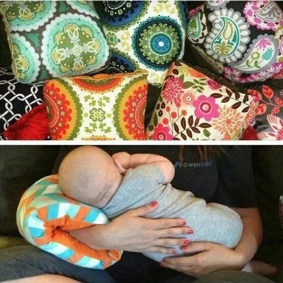 这是很多妈妈都有的辛酸了,给孩子喂奶时候胳膊经常被压得难受,也担心孩子躺的不够舒服,将小枕头卷一圈缝在一起,套在自己的手臂上,孩子吃奶时候正好可以枕在上面,舒服极了。当然可以直接用系扎的方式,这样的话用完还可以继续枕的。