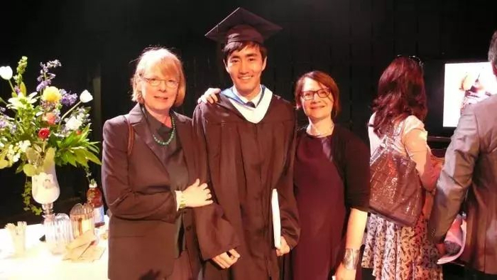 他跑去美国学戏。先后在美国弗吉尼亚大学和杜克大学进修戏剧表演,毕业时少年气十足↓↓