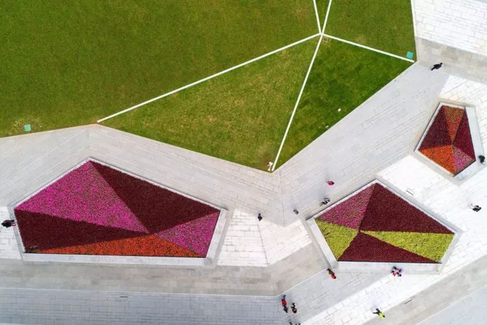 色彩缤纷的立体花景装扮了城市,