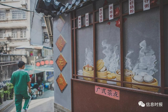 淘金农贸市场旁,墙上画着的是传统的广式点心。信息时报记者 梁钜聪 摄