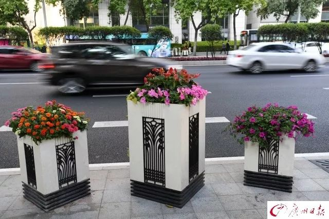 东风中路路边上的花坛花团锦簇。广州日报全媒体记者杨耀烨 摄