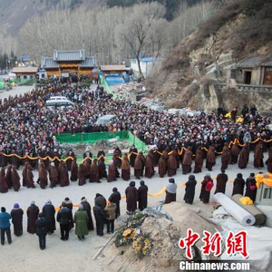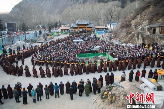 中新网五台山12月3日电 (范丽芳)初冬的五台山,寒意袭人,山风掠过,不禁打个冷颤。3日清晨六时许,枝头霜落还未散去,上万信众已陆续从四面八方赶到梦参长老生前最后住锡地——山西五台山真容寺,为长老送行。当日,中国一代高僧梦参长老追思永怀大会在此举行。