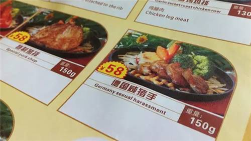菜单更是神翻译的重灾区,国外网站boredpanda上有网友列举了他们看到的奇葩菜单翻译,吓得老外筷子都掉了!!!