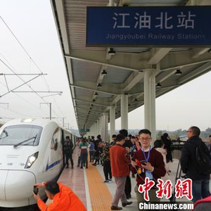 一列西成高铁动车组停在江油北站。 王鹏 摄