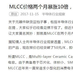 于是这个周末,老陆重点研究了MLCC板块,探寻该板块的投资逻辑。