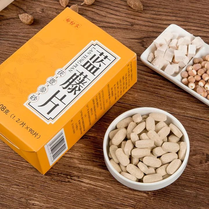 我马上去淘宝搜索了下蓝藤片,发现安徽的一家药厂把蓝藤散做成了片剂。后来我才了解到这个厂家的厂长是蓝老的一位学生,中医世家出身,在安徽创办了一家制药厂,他知道了蓝藤散的配方,他根据自己的多年的制药经验,把18种原料按照配方的比例,把蓝藤散做成了片剂,叫蓝藤片。