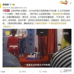 近日,网上视频曝出辽宁抚顺女德班在教学中出现的雷人语录,包括“女子点外卖不刷碗就是不守妇道”、“女人就要少说话,多干活,闭好自己的嘴”、“女子就不应该往上走,就应该在最底层”。视频中还出现的学员擦洗便坑并称自己的心比它还脏,在公众面前磕头认错的行为也引发争议。