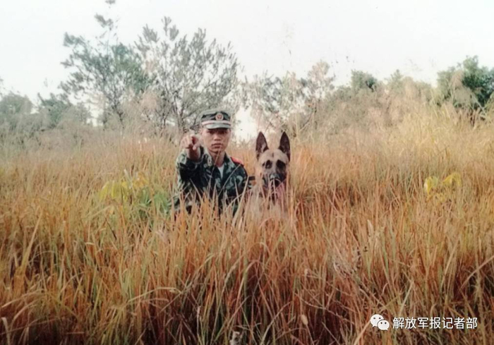 临退前,杨伟聪将爱犬“呼啸”交接给战友李东