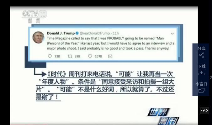 过了仅仅3小时后,《时代》周刊就在推特账号上驳斥了特朗普的声明: