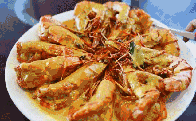 沙巴的奶油老虎虾真的是必尝的美味,巴掌大的老虎虾,浑身包裹着奶黄色的汤汁,一点点咖喱,一点点辣,浓浓的奶香,伴着老虎虾的鲜甜,令人食指大动回味无穷。(马来西亚的咖哩里都有椰浆,减低了辛辣、提升了香味,所以味道比较平和清新。所以不能吃辣的朋友也可以尝试一下哦~)
