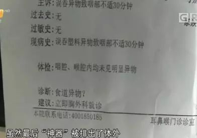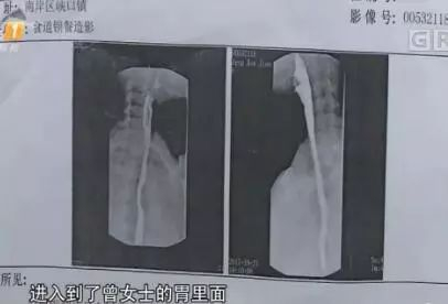 随后,曾女士被家人送到了医院救治,经过医生检查,黑色夹子可能顺着鼻腔,进入到了曾女士的胃里面。