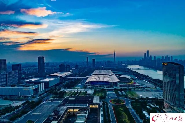 (12月2日,黄昏时分,会展中心在璀璨天空的映衬下显得格外恢宏。广州日报全媒体记者 陈忧子 摄)