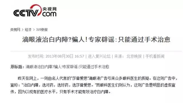 其实早在 2013 年,同济大学附属东方医院眼科主任崔红平医生就实名爆料,指出莎普爱思存在虚假宣传。