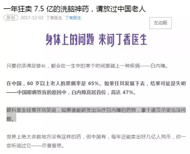 请让更多的人,知道疾病和广告营销背后的真相——对于治疗白内障,莎普爱思可能不靠谱。