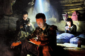 ▲在甘肃白水江国家级自然保护区的“扎荒”点,护林员躺在被窝中等待天气好转(11月18日摄)。
