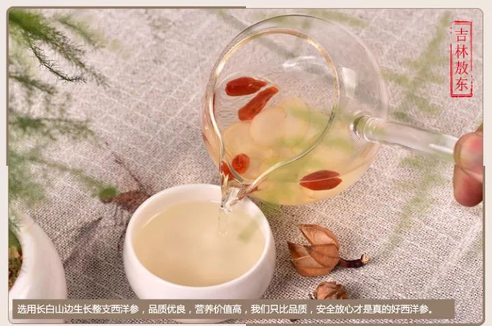 食用方法:西洋参20片左右,枸杞10-20粒,沸水500克浸泡代茶饮。