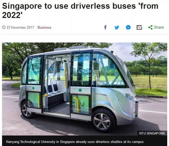 BBC报道,南洋理工大学正在牵头研制新加坡自己的小型无人公交系统,希望在2022年在五个城区投入使用。