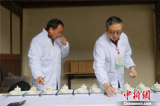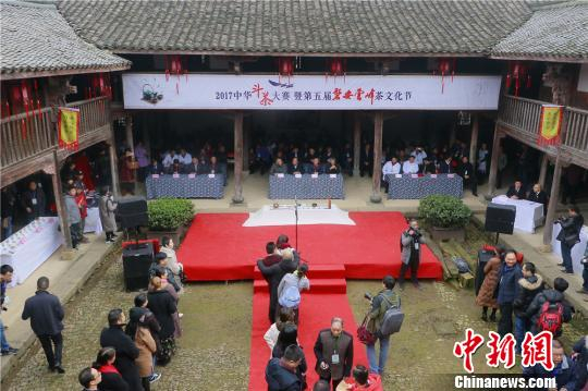 中新网金华12月4日电(张勇)3日,一场以“弘扬茶文化,提升茶产业”为主题的2017中华斗茶大赛暨第五届磐安云峰茶文化节,在浙江省磐安县玉山古茶场举行。此次大赛共吸引了来自国内外30余位茶道学者及专家前来碰撞交流。据了解,本次大赛共分为茶汤对茶样和斗茶品两个内容,参赛选手通过对茶叶的观察、茶汤的口感等方面进行评审。活动当天,还举办了祭茶神、立“龙虎大旗”等民俗祈福文化表演活动。