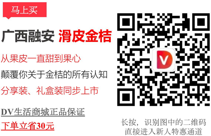 有些吃友或许已经在一些高档超市见过滑皮金桔了,却很少是来自融安的——尽管滑皮金桔从融安诞生,也以融安为品质标杆,但融安不是唯一的产地。小v也吃过其他地方的品种,甜度是够的,但是果皮厚了些,籽多了些,吃起来就少了融安金桔那股子惊天动地、老少通吃的美了。