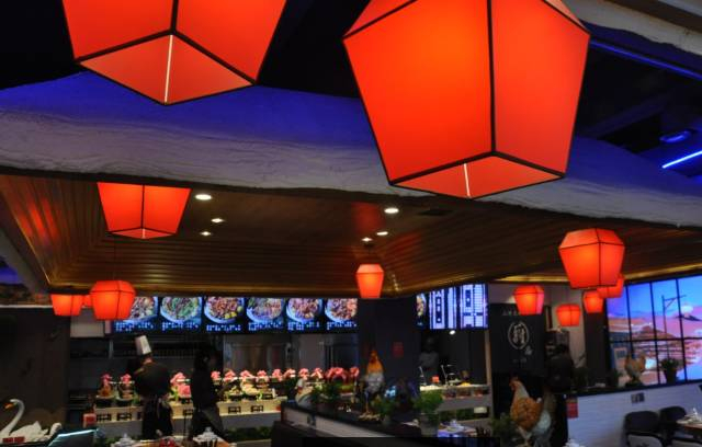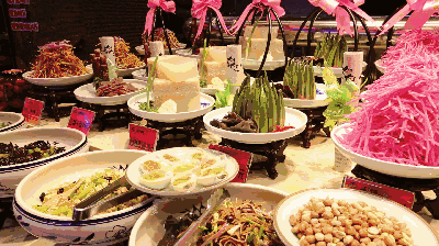 ▲一楼大厅各色凉菜、啤酒菜应接不暇。