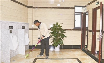 赵金禄原先负责打扫双塘路公厕卫生,在庆丰公厕投入使用后,区环卫所将他安排到庆丰公厕做管理员。“公厕近期才开放,每天都有很多人上厕所,我们保洁工作一刻也停不下来。”他说。