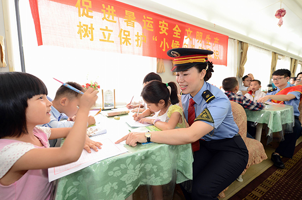 近24小时的长途跋涉,列车长陈美芳带领着乘务员帮助络绎不绝的旅客拿行李下车、指路,她与其团队又顺利完成了一次客运服务。
