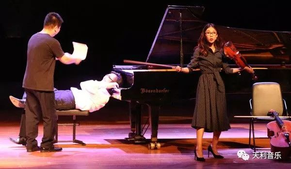 艺术家们也是别出心裁,在演奏《献给爱丽丝》这首曲子时,美女小提琴家陈静雅扮成严格的老师出场,钢琴家李玮捷和大提琴家梁松则扮成了学生,顽皮地弹出了不着调儿的音乐,逗得全场观众乐不可支!