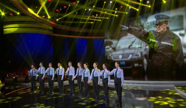 △ “岁月近、山河远,苍穹之下,见证着你,无悔的忠诚。”原创《平安行》主题曲《无悔苍穹》由10位全国十佳交警主持人演唱并通过晚会首次对外发布。