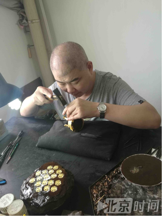 提到比赛,杨晋觉得时间比较紧,都说慢工出细活,要在给定的一段时间内做出这个成品,同时要结合比赛给定的题目和规定进行錾刻,还是比较紧张的。