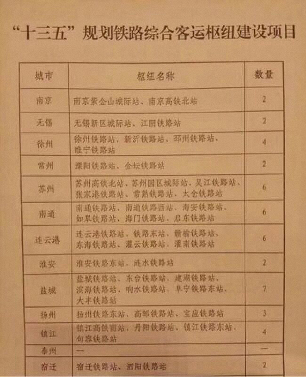 至于网传一张江苏“十三五”铁路综合客运枢纽列表中,泰州客运枢纽数量为0的质疑,泰州市铁路办相关负责人表示,早在今年初就对此问题进行了回应。