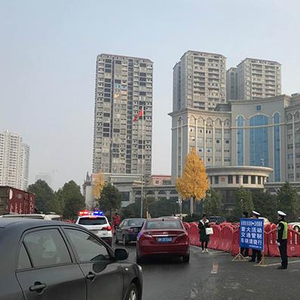 李亿龙案9点开庭,早点7点开始,娄底中院门口马路实施交通管制。本文图片 澎湃新闻记者 谭君 图