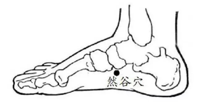 按摩的时候,首先找准然谷穴的位置,然后手部对其进行轻柔的按压,以此穴位有酸胀的感觉为准。