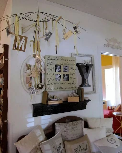 除了挂阳台晾衣服,挂在客厅变成挂饰也是美美哒,绑一些丝带,夹几张家人的照片,又有创意又温馨。