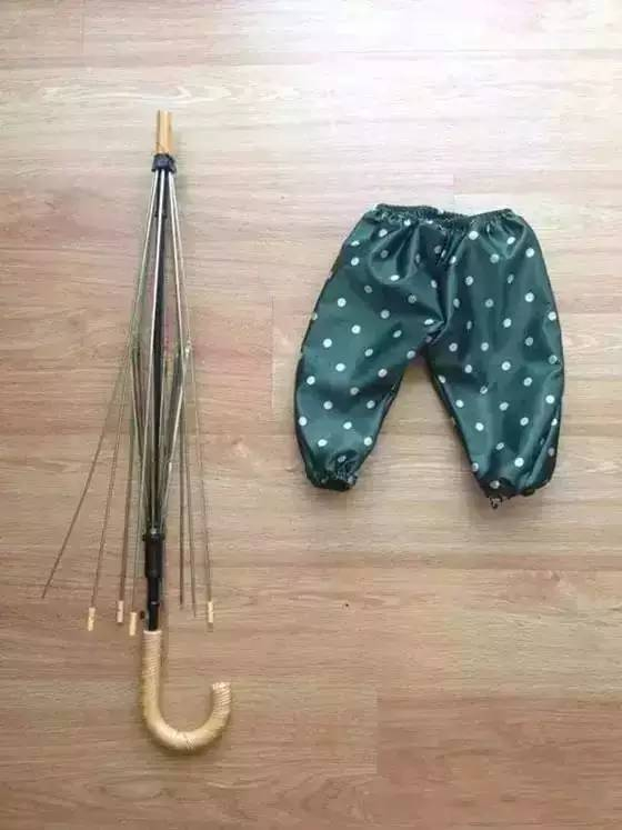 除了裙子,利用伞面布料防水的特性,给家里宝宝做一条防水裤,以后在院子里玩耍也不怕弄脏弄湿衣服啦。