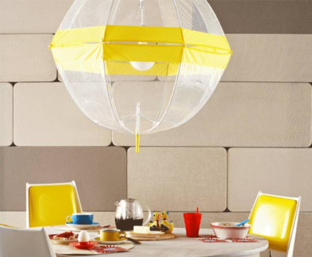 餐厅想要灯光美气氛佳,两把鹅黄色的雨伞拼一起!