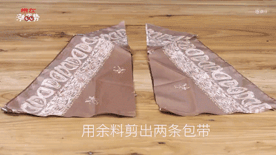 在多余的边角布料中剪出两条带子做包带,然后缝上去。