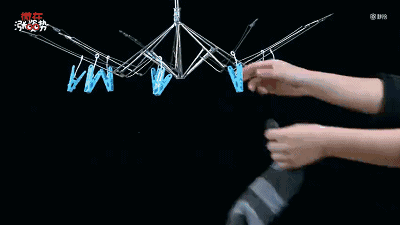 伞架也能继续利用呀,去掉伞布后,在伞骨架上挂上晾衣夹。