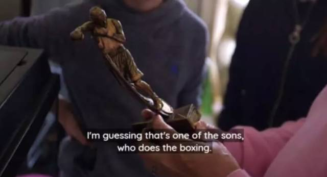 然而跟穷爸爸不同的是,环绕房间一周后,富爸爸看到家里的拳击手雕塑,立马教育孩子: