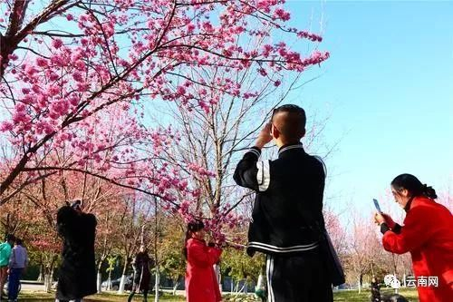 大理学院内的这一抹红艳,远望如霞;走近了,满树的花朵重叠如绣球,迎着阳光,争先怒放,赶着趟儿,比着艳丽,唯恐淹没了芳华。樱花一朵胜过一朵,一团胜过一团,一株胜过一株,一片胜过一片,在大理的冬天里成为万人向往陶醉的风景。