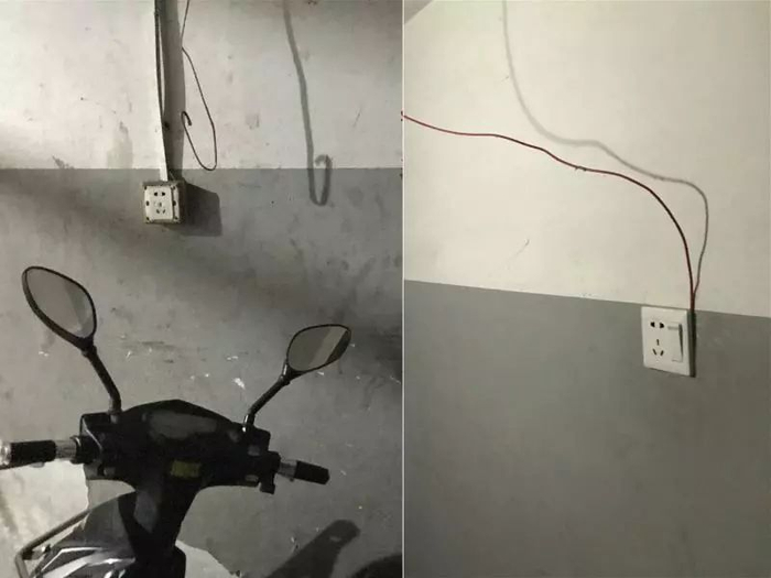 许多居民不得不恢复以前的做法:车停在地面或者楼道里,从楼上屋内天降“飞线”,进行充电……
