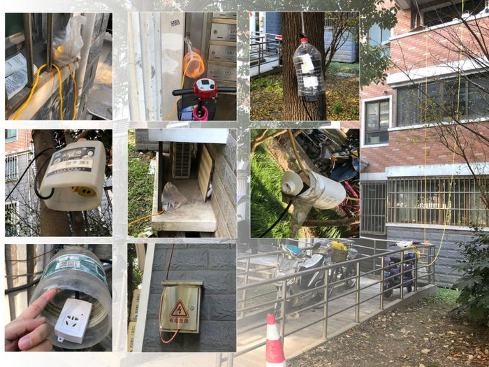 △居民们为了防止“天降充电”时露水或者下雨引起插座短路,可谓是“绞尽脑汁”。