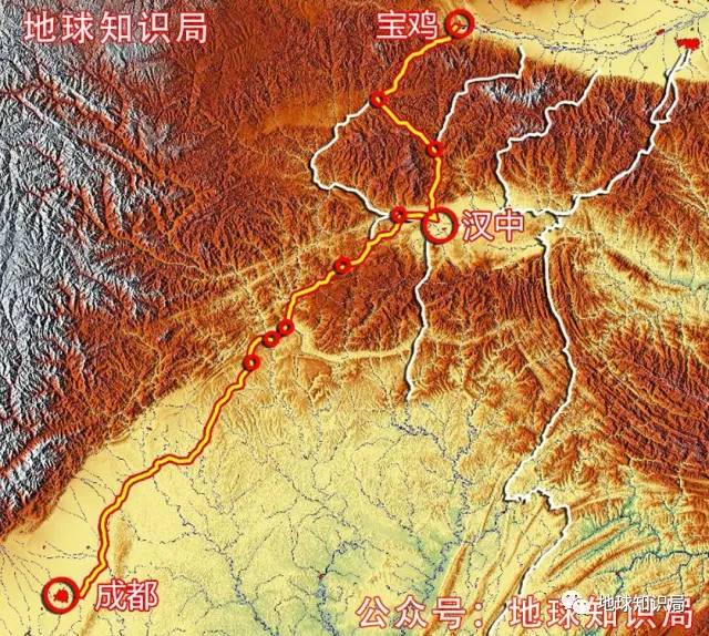 成都至汉中段沿金牛道,汉中至西安段基本与傥骆道一致;