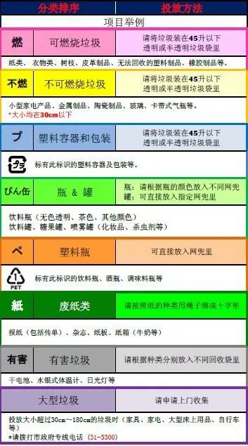 日本新居浜市政府官方网站上的垃圾分类信息(图片来源网络)
